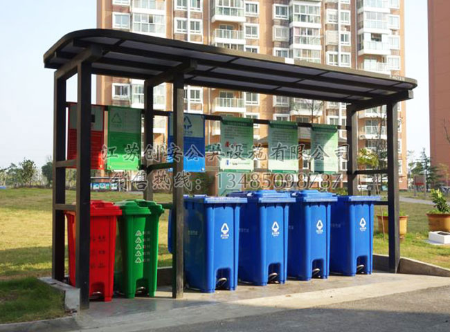垃圾分類亭是垃圾分類工作中投放的可以為環衛垃圾桶、垃圾分類回收箱、舊衣回收箱等提供遮陽避雨的產品。它由垃圾房衍生而來,與垃圾房相比,垃圾分類亭擁有更靈活的投放、更低的成本、更通透的投放環境,更清潔、更美觀的優點。